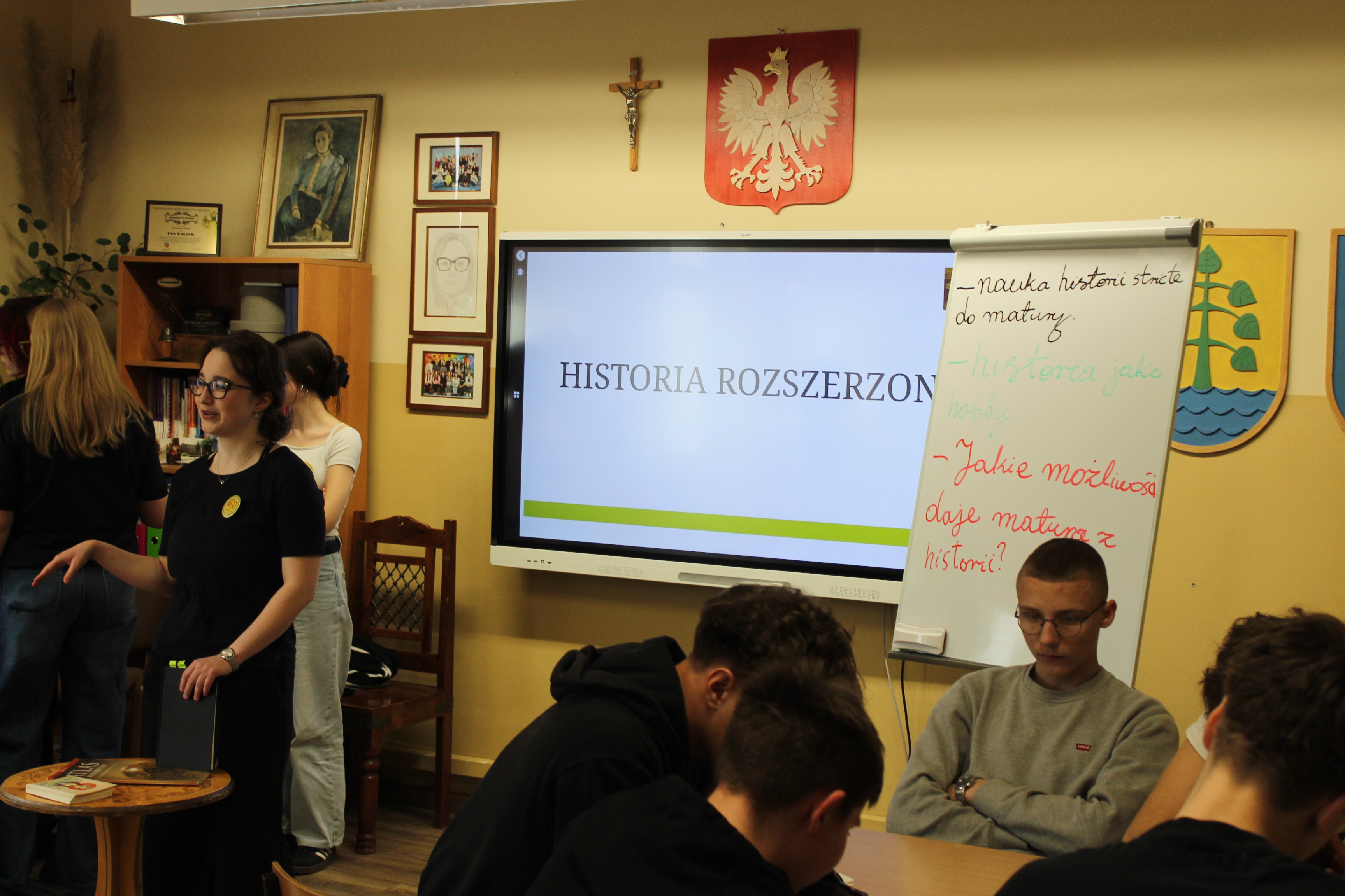 Przyjemnym „przerywnikiem” w trakcie intensywnych zajęć w blokach przedmiotowych była strefa chilloutowa – z muzyką, przytulnymi kanapami w tle i słodkim poczęstunkiem w szkolnej świetlicy. Ciekawym punktem było również zwiedzanie wystawy na szkolnym korytarzu pt.: „Życie codzienne w PRL-u”, a także podziwianie galerii „Żywych obrazów” z wizerunkami naszych uczniów, pozujących do zdjęć inspirowanych obrazami znanych malarzy – polskich i zagranicznych, takich jak St. Wyspiański, J. Matejko, J. Chełmoński, czy A. Renoir.